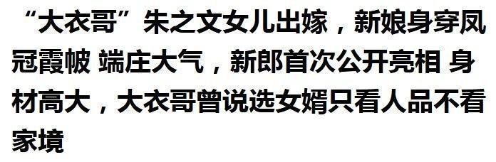 今天闺女出嫁,大家这才瞧出大衣哥挑女婿的本事,女婿正面照一公开,身份背景被深挖后发现不一般,就连大衣哥给闺女的嫁妆也惹来了不少议论……2号那天,大衣哥朱之文家的闺女朱雪梅要结婚的消息,在社交网络上被传得沸沸扬扬。